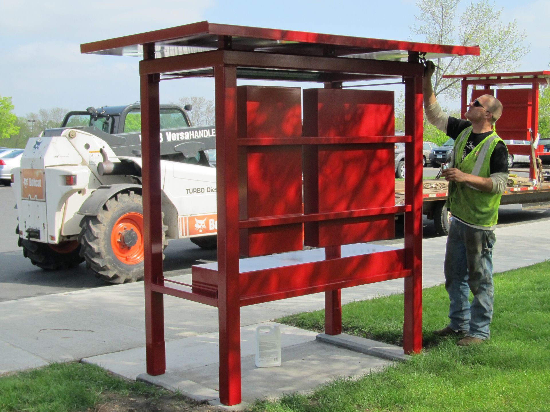 Fun little project. After fabrication, the kiosk was galvanized and hot dipped for longevity.